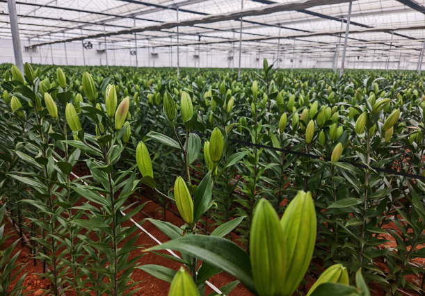 曙禾花卉企业负责人宋晓林算了一笔账,仅在2025年,曙禾花卉向周边种植户销售200万颗种球,为农户节省20万元种球成本。而通过发展无土栽培,统一市场营销,百合花的质量提升,售价每支提高了0.1元,亩均收益提升了1000元。