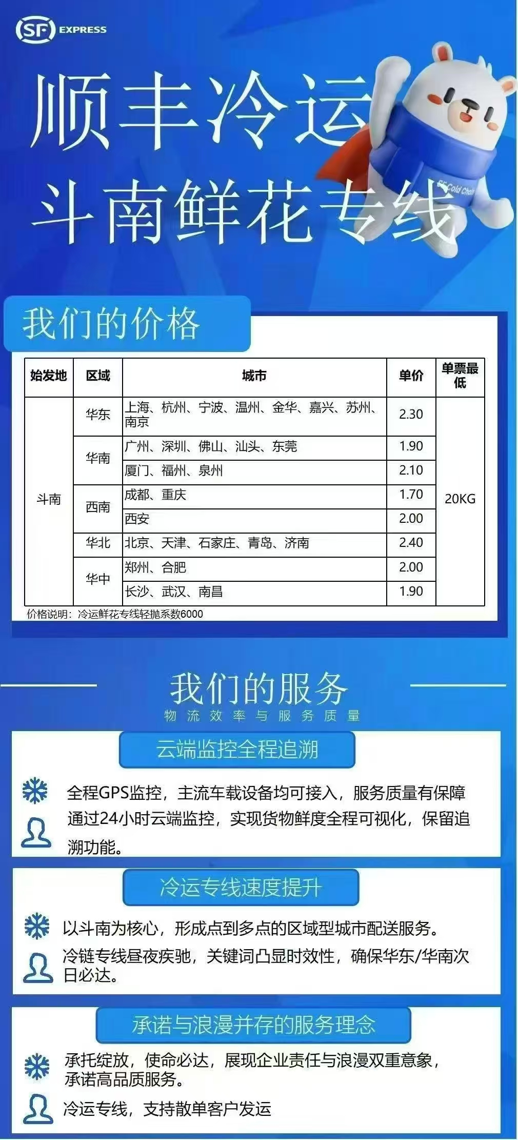 鲜花大件冷链发运找顺丰,你身边最靠谱的冷链物流 ,保障高品质服务!有需求欢迎来电骚扰,24小时等待你的来电:13669795523
