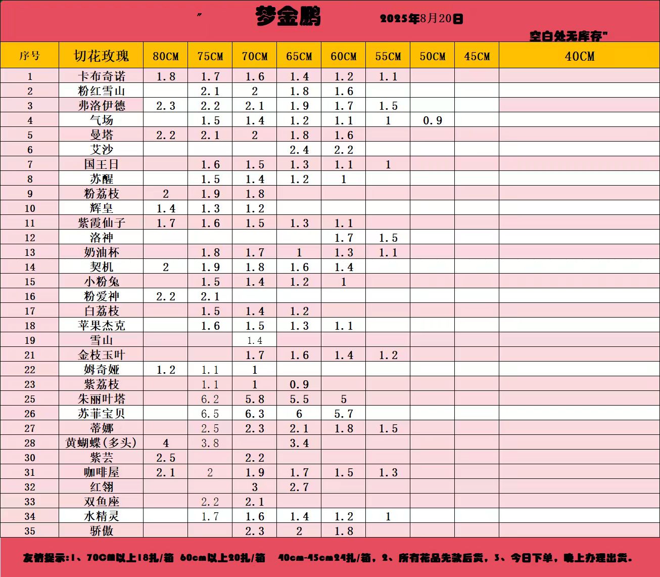 注:小量订购最低多品种混搭满6KG(10扎花左右),装一箱发货